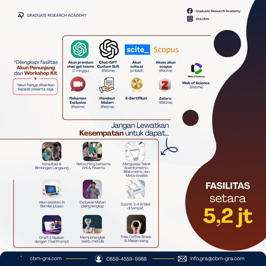 Anda akan dibimbing untuk menguasai basic prompting dan teknik menulis artikel secara penuh menggunakan AI. Pelajari secret prompting exclusive dari GRA untuk mendapatkan hasil yang optimal dan efisien.- Hari 2: Mengelola Sumber Daya Ilmiah Secara Cerdas